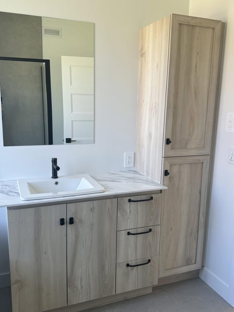 Mobilier élégant et fonctionnel pour optimiser l’espace : vanités, armoires, meubles-lavabos.