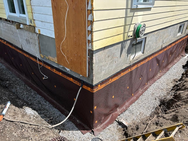 Imperméabilisation de fondation : membranes, plaques d’acier et colmatage pour protéger vos murs contre l’humidité.